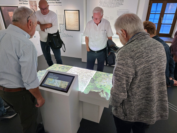Die etwa zweistündige Führung startete in dem Eingangs- und Kassenraum des Museums, wo Klosa organisatorische Details, wie die Beschriftung, die Inklusionsmaßnahmen und das Museumskonzept erörterte. Durch den Raum, der die Verbindung des Erzbergbaus am Teisenberg mit der prähistorischen und der Römerzeit herstellt, ging es zuerst ins Erdgeschoss, wo der Erzabbau unter Tage und die frühe Neuzeit bis Ende des 18. Jahrhunderts beziehungsweise die Salzburgische Zeit der Eisengewerkschaft Achthal, gegründet 1537, zu erleben sind. Auch die Zeit der Industrialisierung, die im Obergeschoss gezeigt wird, stieß auf viel Interesse. Vor allem die Medienstationen fanden bei den Besuchern große Aufmerksamkeit.
